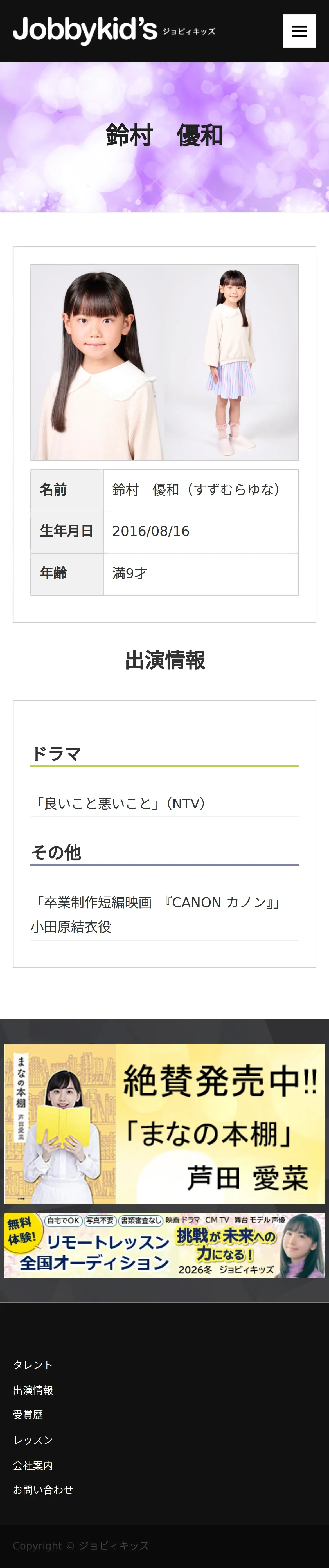 https://www.jobbykids.jp:443/talent/%E9%88%B4%E6%9D%91%E5%84%AA%E5%92%8C/