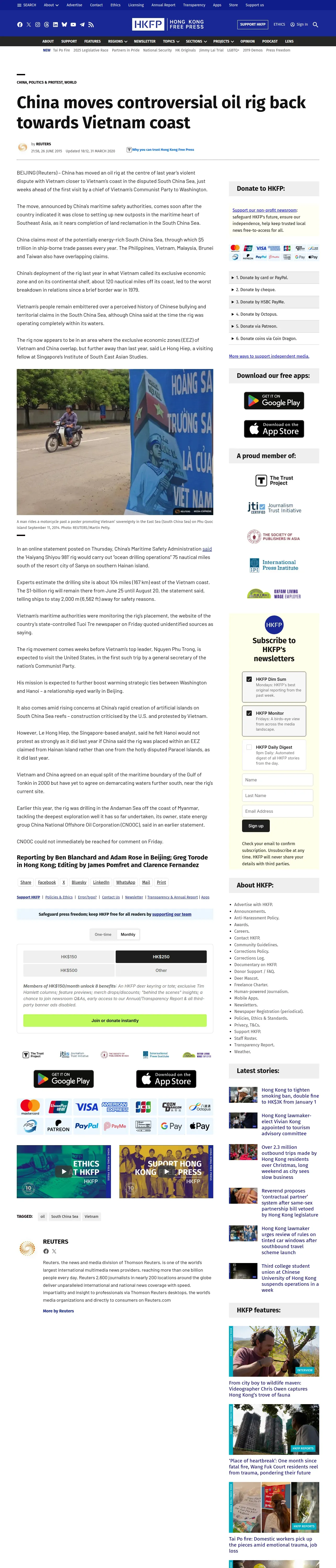 取得元URL: https://hongkongfp.com:443/2015/06/26/china-moves-controversial-oil-rig-back-towards-vietnam-coast/