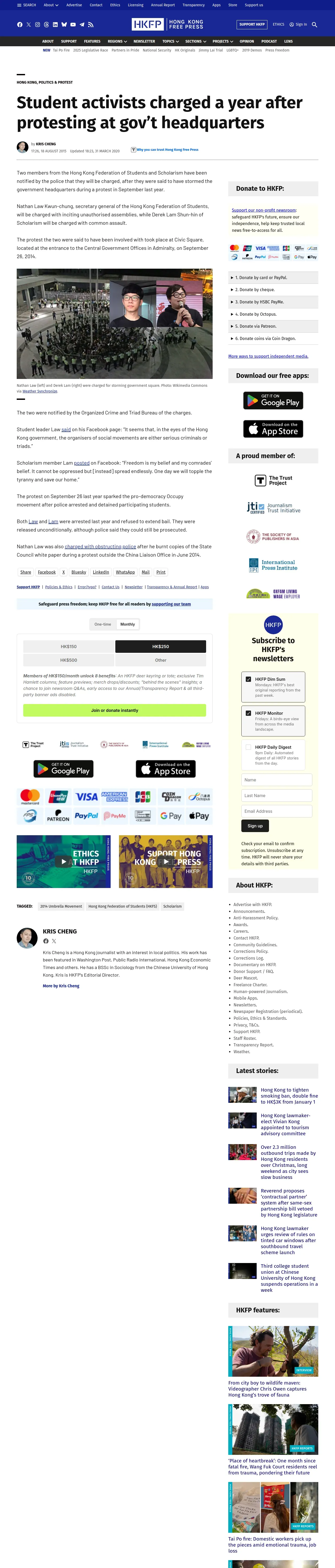 https://hongkongfp.com:443/2015/08/18/student-activists-charged-a-year-after-protesting-at-govt-headquarters/