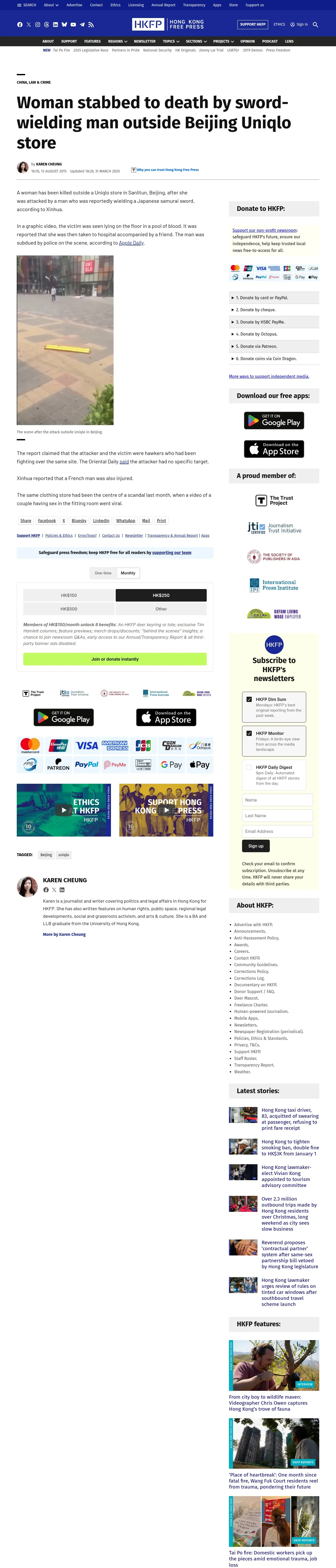 取得元URL: https://hongkongfp.com:443/2015/08/13/woman-stabbed-to-death-by-sword-wielding-man-outside-uniqlo-store-in-beijing/