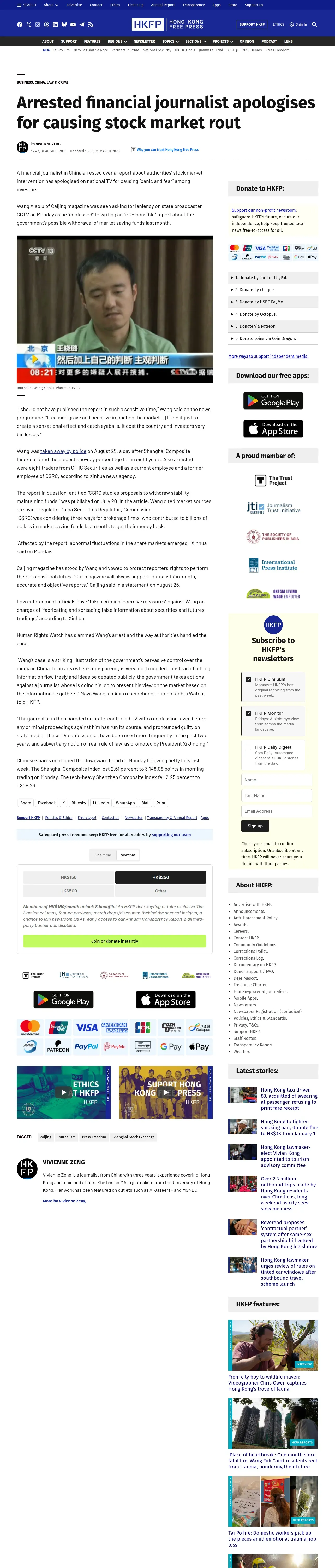 取得元URL: https://hongkongfp.com:443/2015/08/31/arrested-financial-journalist-apologises-for-causing-stock-market-rout/