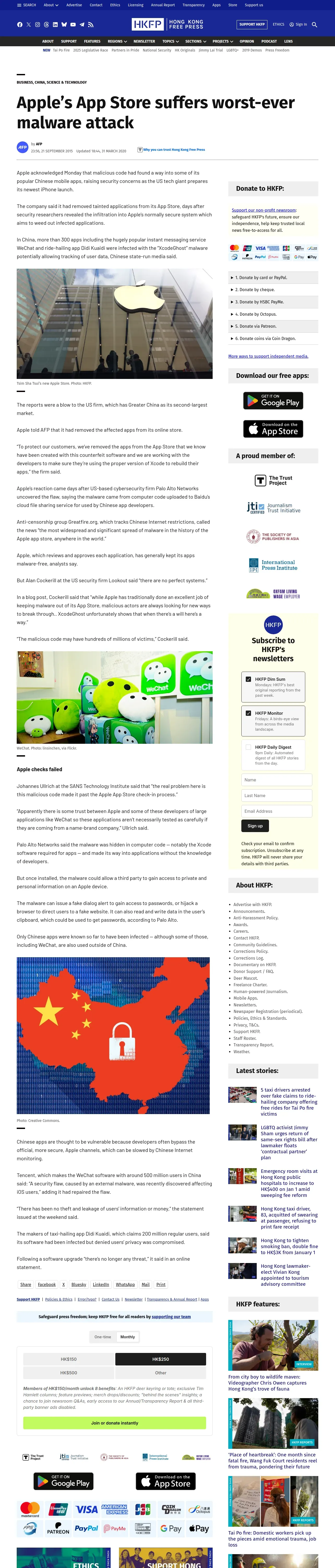 取得元URL: https://hongkongfp.com:443/2015/09/21/apples-app-store-suffers-worst-ever-malware-attack/