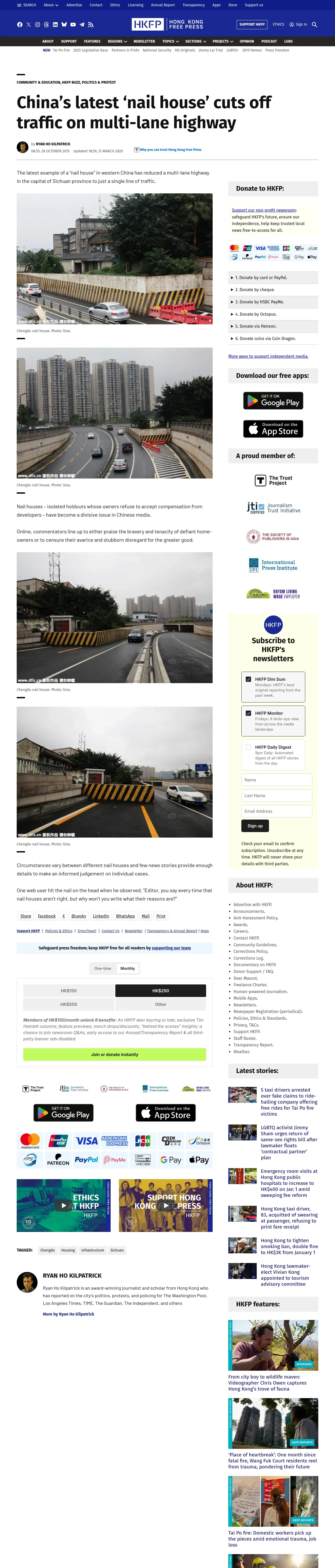https://hongkongfp.com:443/2015/10/26/chinas-latest-nail-house-cuts-off-traffic-on-multi-lane-highway/