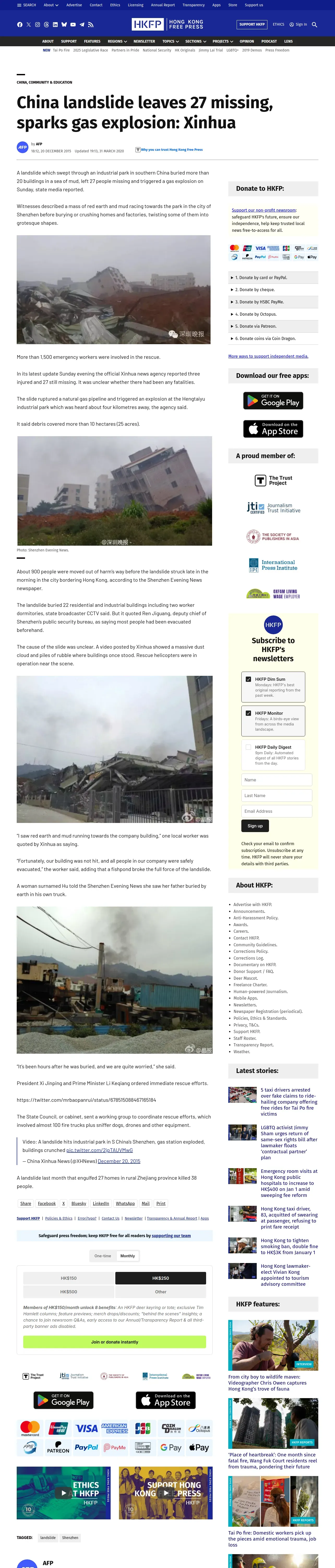 取得元URL: https://hongkongfp.com:443/2015/12/20/landslide-at-industrial-park-in-china-leaves-41-missing/
