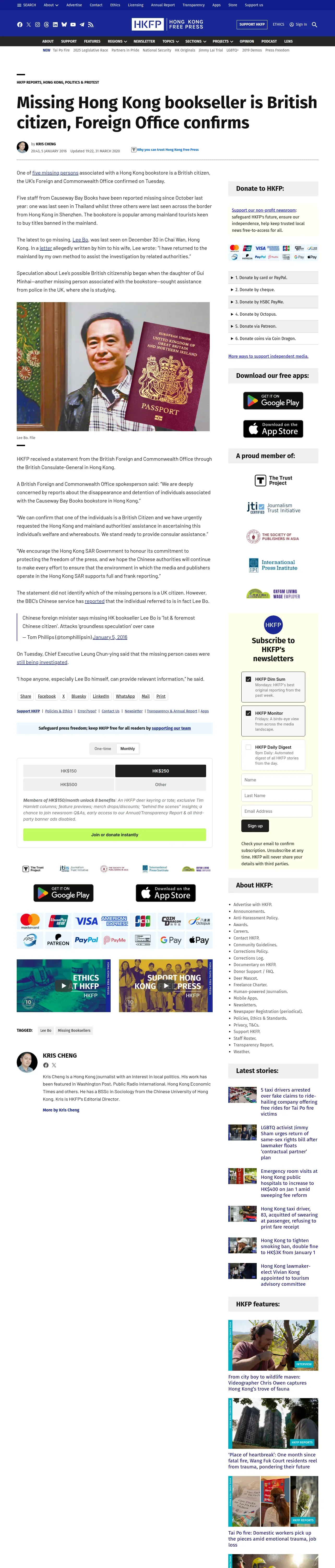 https://hongkongfp.com:443/2016/01/05/missing-hong-kong-bookseller-is-british-citizen-foreign-office-confirms/