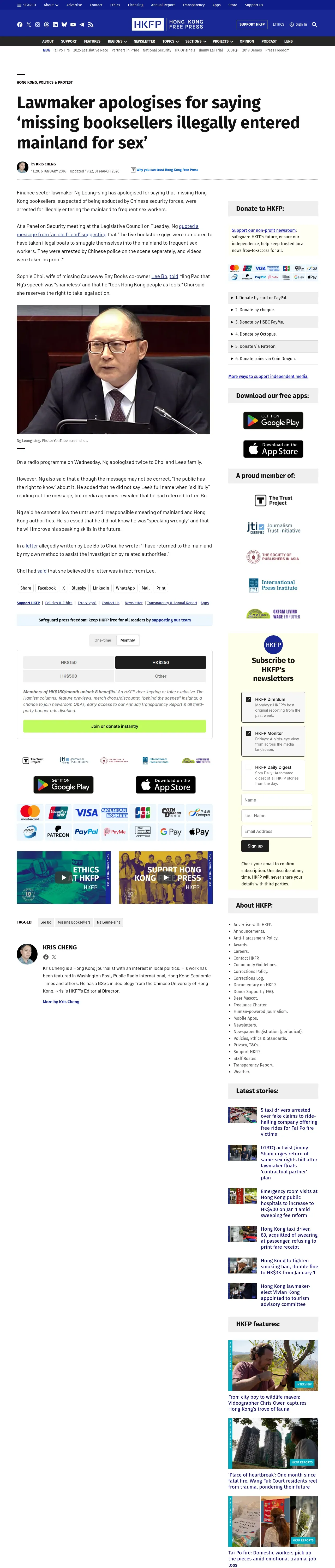 https://hongkongfp.com:443/2016/01/06/lawmaker-apologises-for-saying-missing-booksellers-illegally-entered-mainland-for-sex/