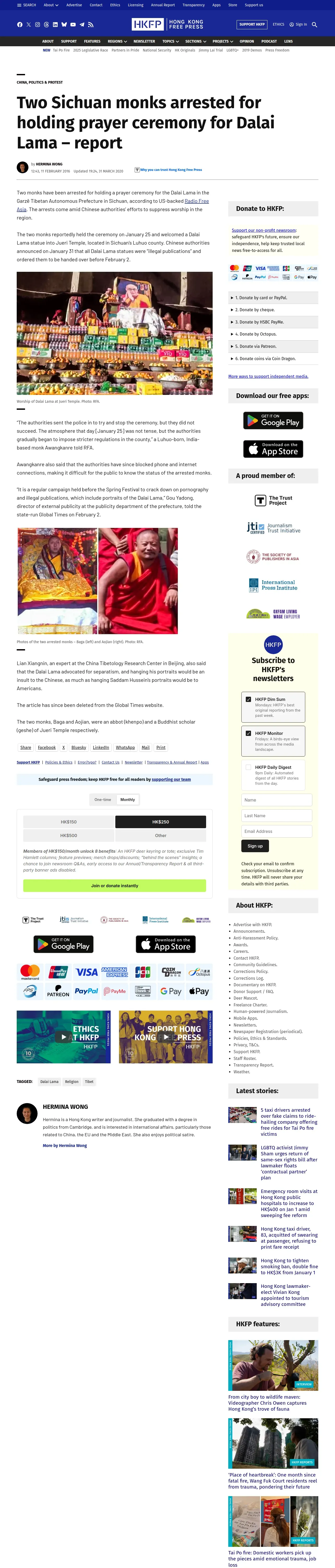 https://hongkongfp.com:443/2016/02/11/two-sichuan-monks-arrested-for-holding-prayer-ceremony-for-dalai-lama-report/