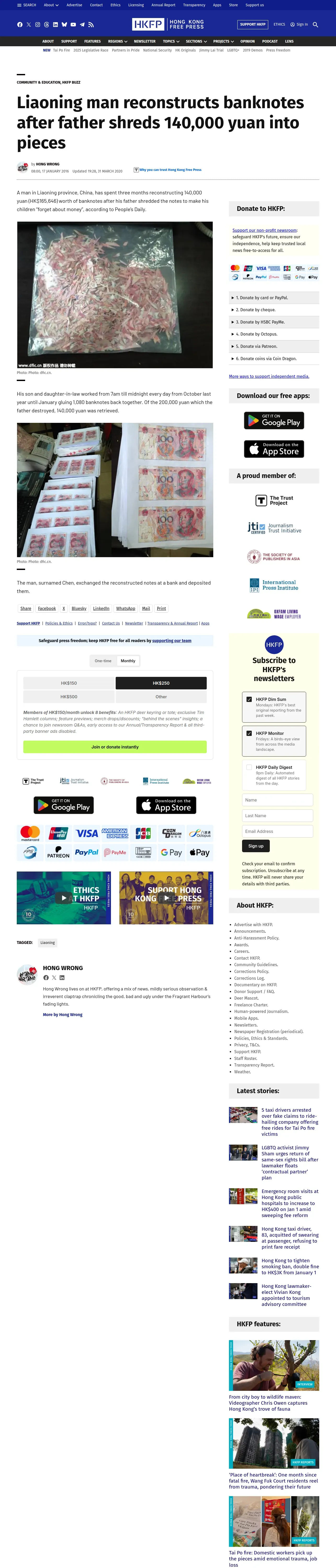 https://hongkongfp.com:443/2016/01/17/liaoning-man-reconstructs-banknotes-after-father-shreds-140000-yuan-into-pieces/