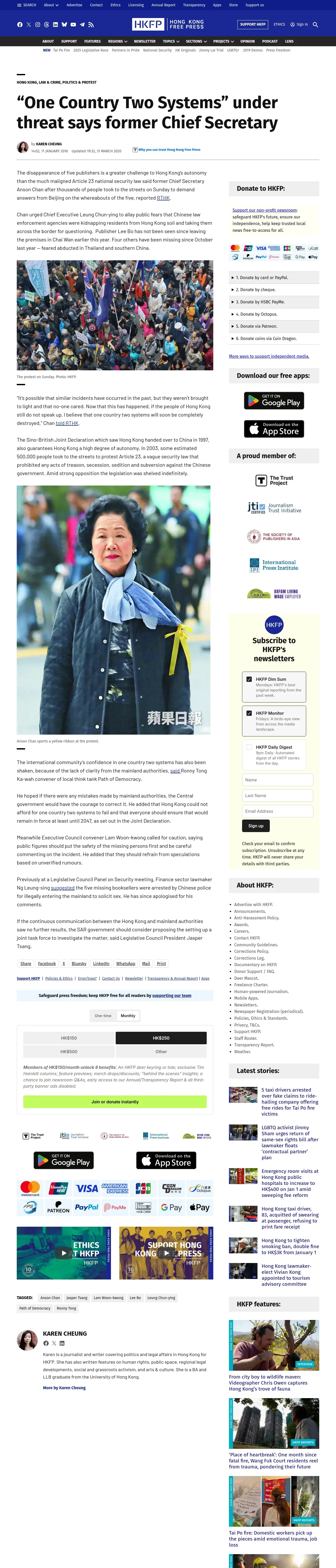取得元URL: https://hongkongfp.com:443/2016/01/11/one-country-two-systems-under-threat-says-former-chief-secretary/