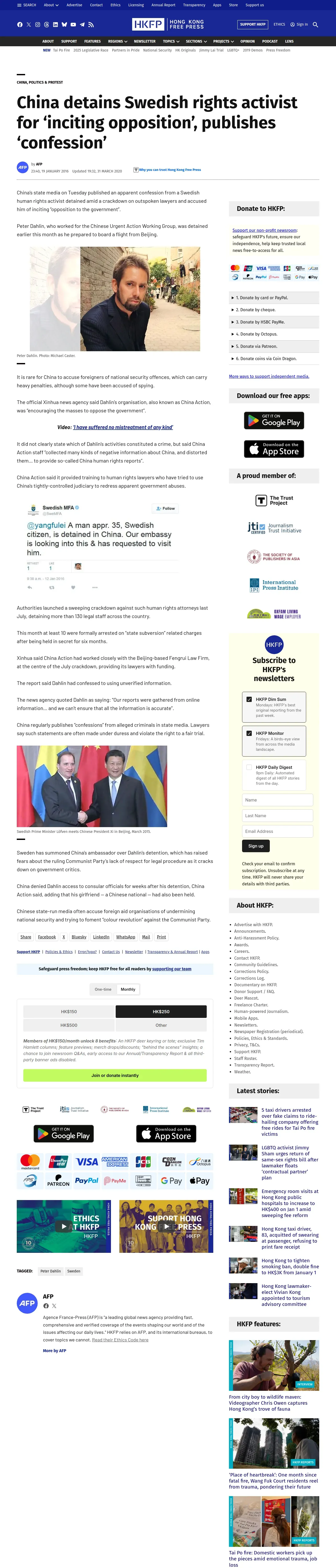 https://hongkongfp.com:443/2016/01/19/china-detains-swedish-rights-activist-for-inciting-opposition-publishes-confession/