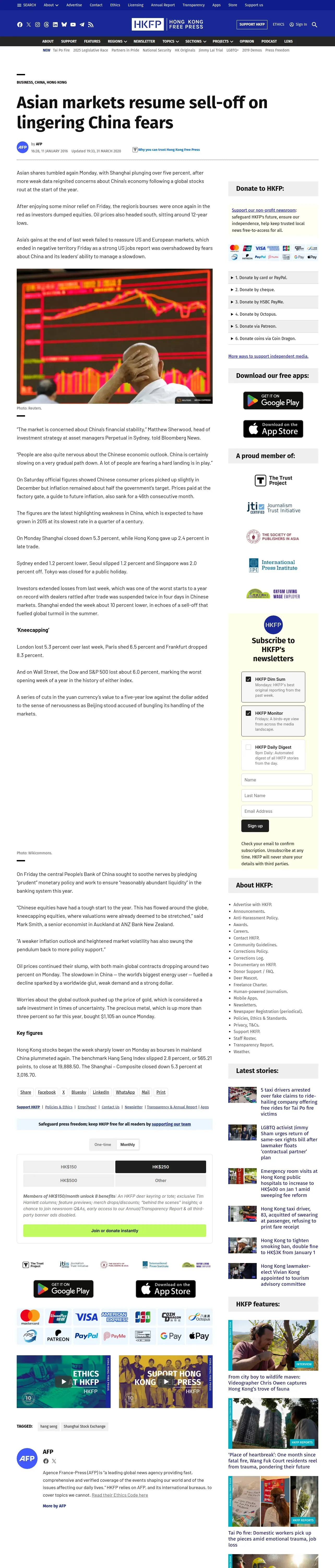 取得元URL: https://hongkongfp.com:443/2016/01/11/asian-markets-resume-sell-off-on-lingering-china-fears/