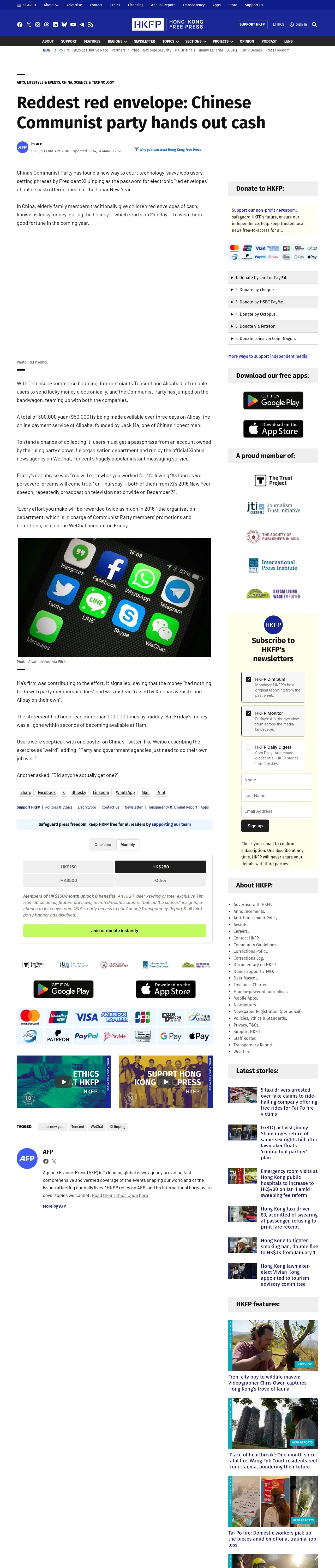 https://hongkongfp.com:443/2016/02/05/reddest-red-envelope-chinese-communist-party-hands-out-cash/
