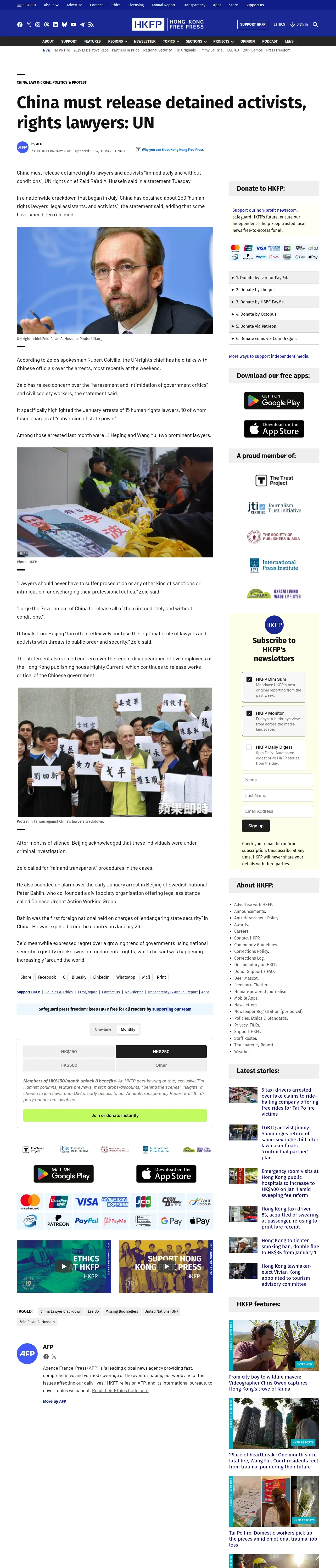 https://hongkongfp.com:443/2016/02/16/china-must-release-detained-activists-rights-lawyers-un/