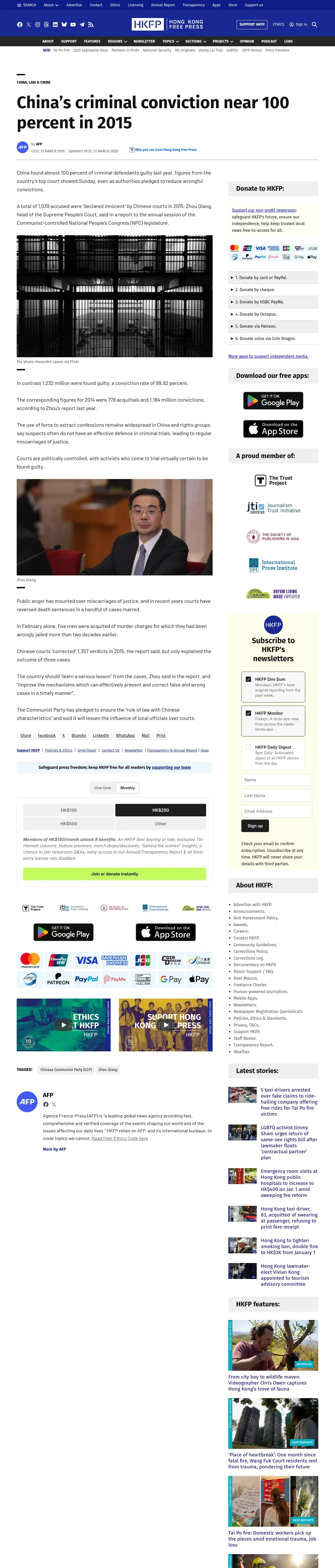 https://hongkongfp.com:443/2016/03/13/chinas-criminal-conviction-near-100-percent-in-2015/