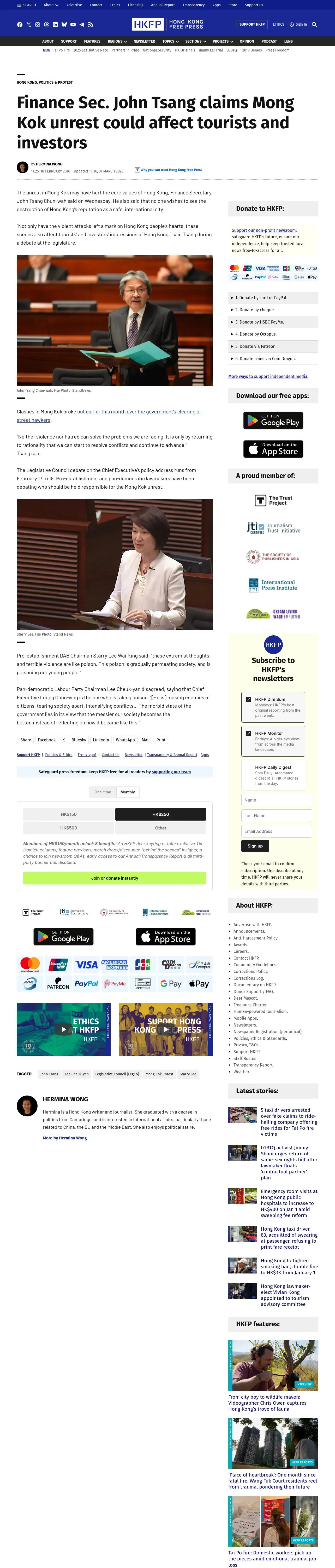 https://hongkongfp.com:443/2016/02/18/finance-sec-john-tsang-claims-mong-kok-unrest-could-affect-tourists-and-investors/
