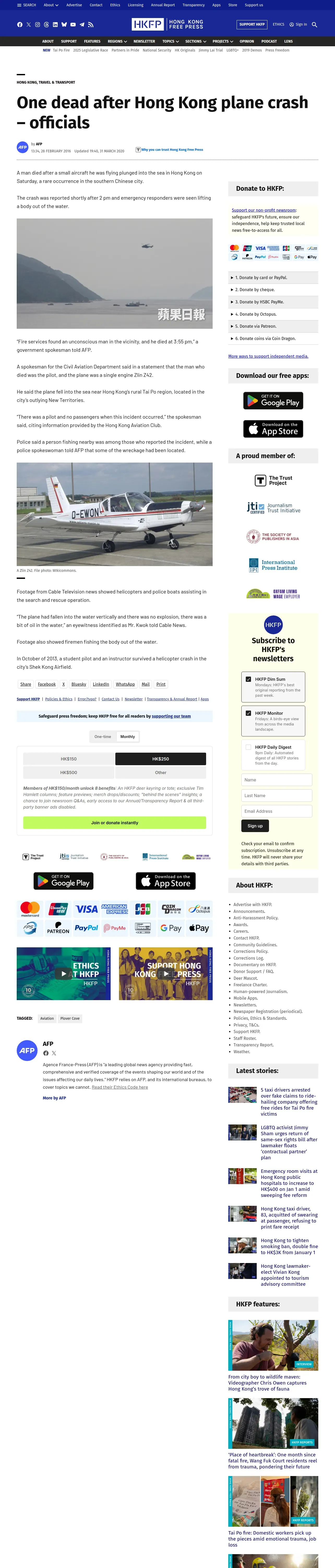 https://hongkongfp.com:443/2016/02/28/one-dead-after-hong-kong-plane-crash-officials/
