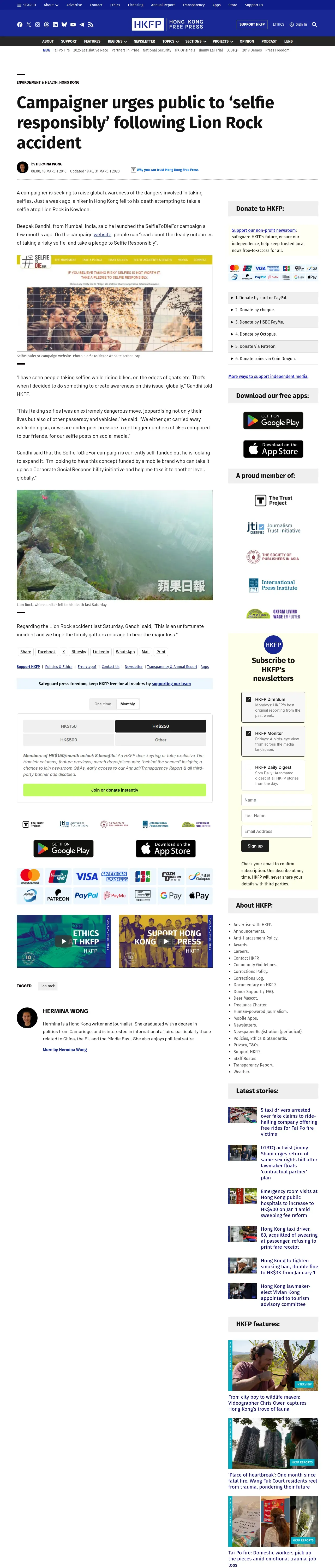 https://hongkongfp.com:443/2016/03/18/campaigner-urges-public-to-selfie-responsibly-following-lion-rock-accident/