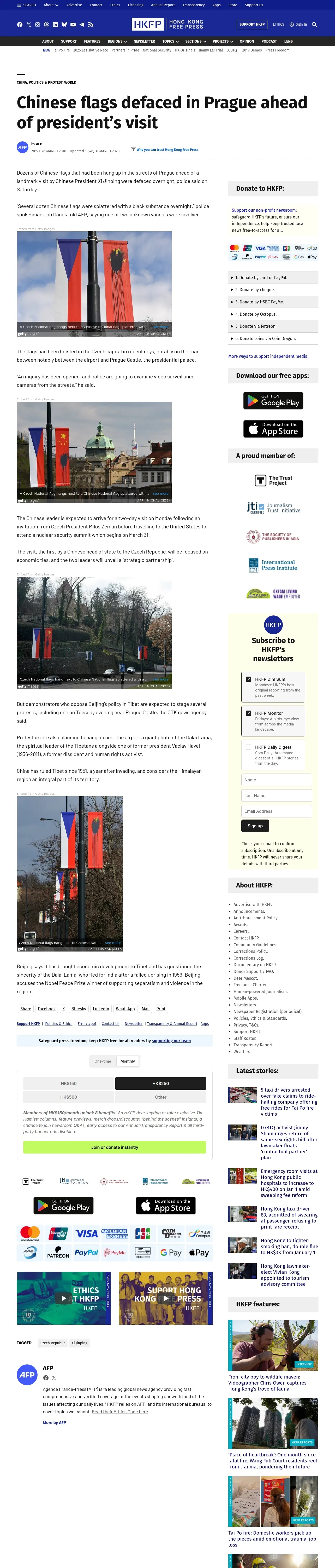 https://hongkongfp.com:443/2016/03/26/chinese-flags-defaced-in-prague-ahead-of-presidents-visit/