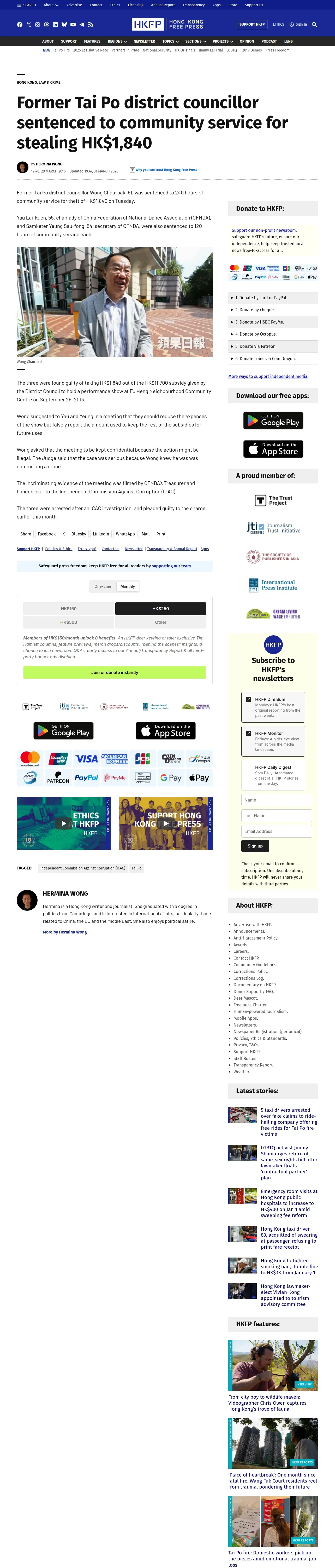 https://hongkongfp.com:443/2016/03/29/former-tai-po-district-councillor-sentenced-to-community-service-for-stealing-hk1840/