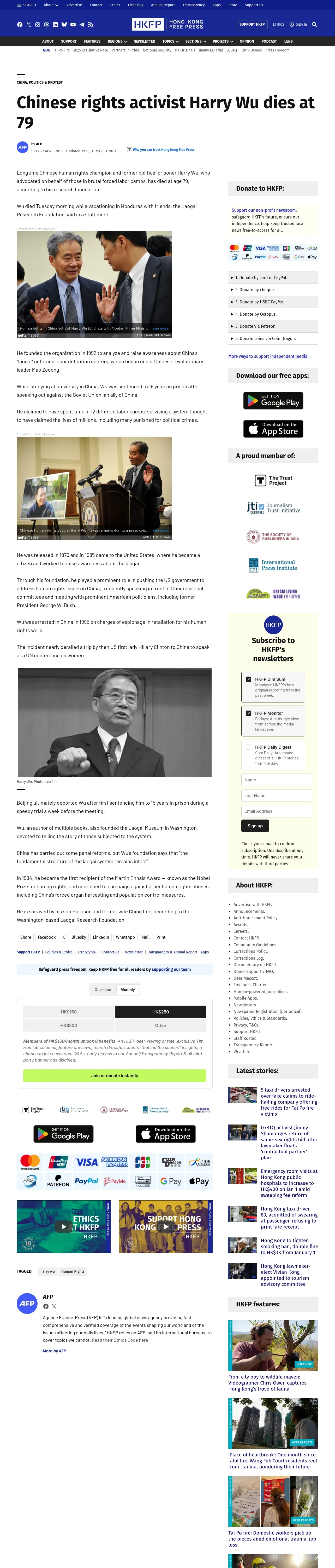 https://hongkongfp.com:443/2016/04/27/chinese-rights-activist-harry-wu-dies-at-79/