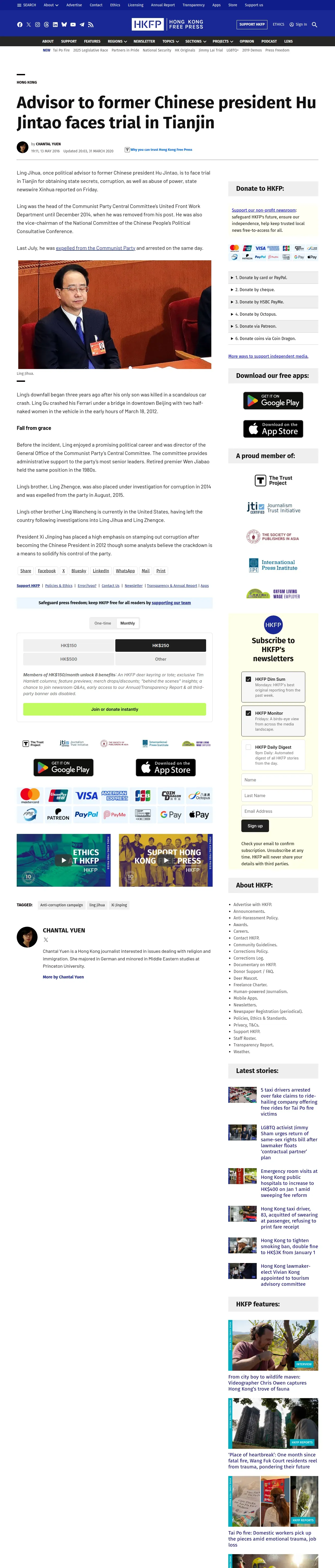https://hongkongfp.com:443/2016/05/13/advisor-to-former-chinese-president-hu-jintao-faces-trial-in-tianjin/