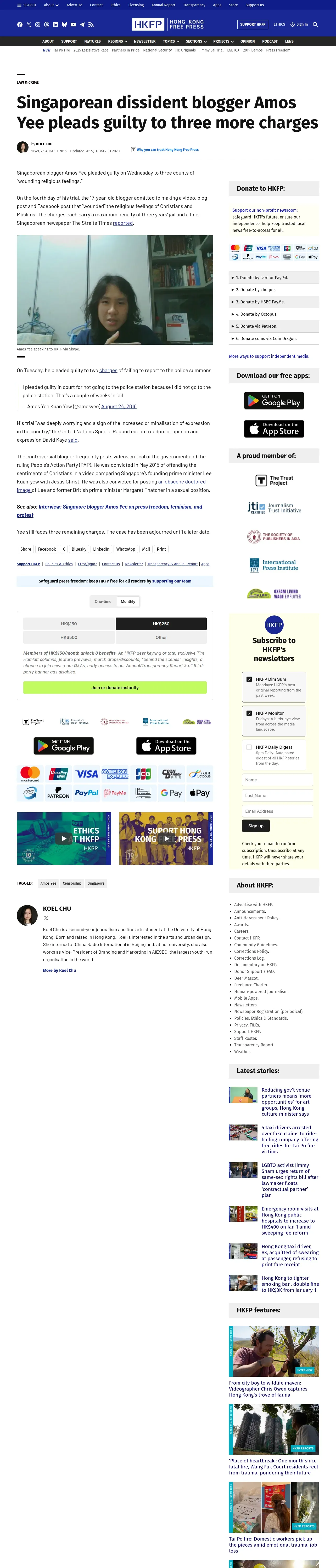 https://hongkongfp.com:443/2016/08/25/singaporean-blogger-amos-yee-pleads-guilty-to-three-more-charges/