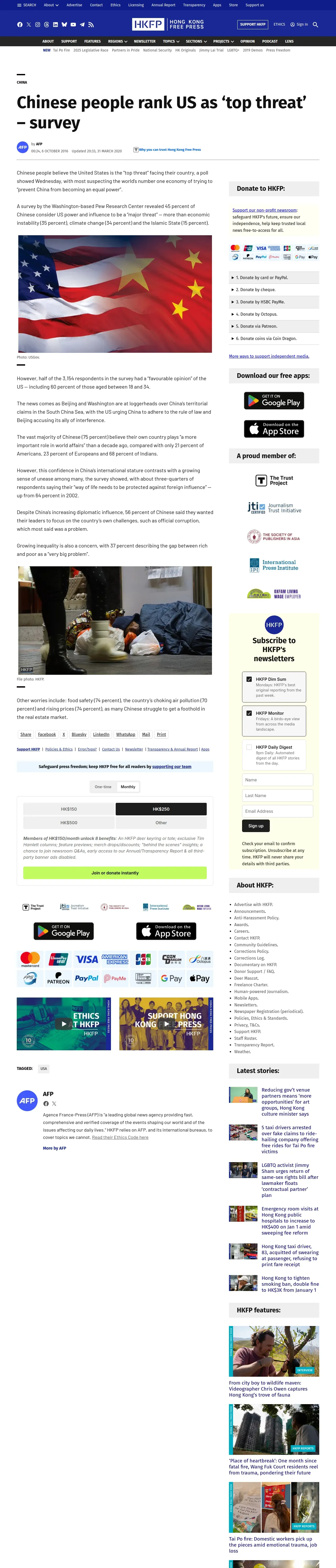 https://hongkongfp.com:443/2016/10/06/chinese-people-rank-us-as-top-threat-survey/