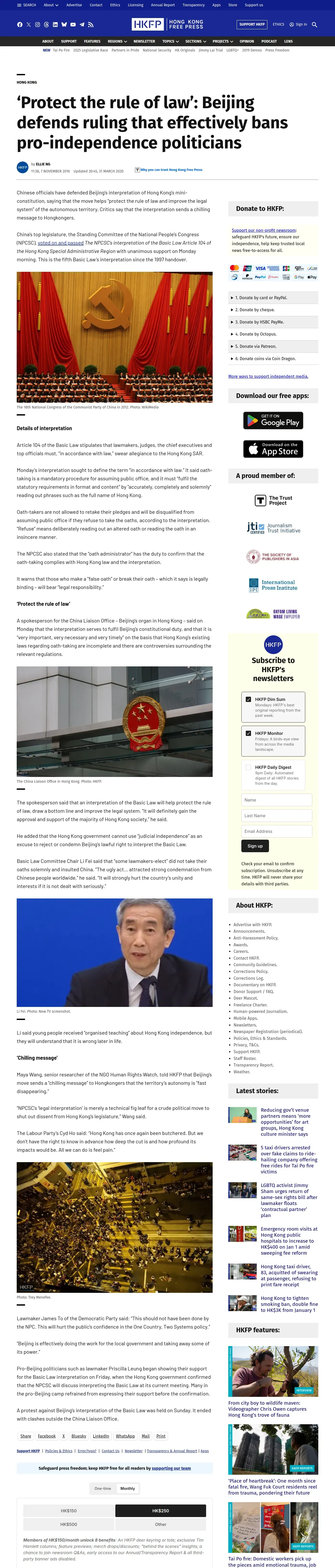 取得元URL: https://hongkongfp.com:443/2016/11/07/protect-rule-law-beijing-defends-ruling-effectively-bans-pro-independence-politicians/