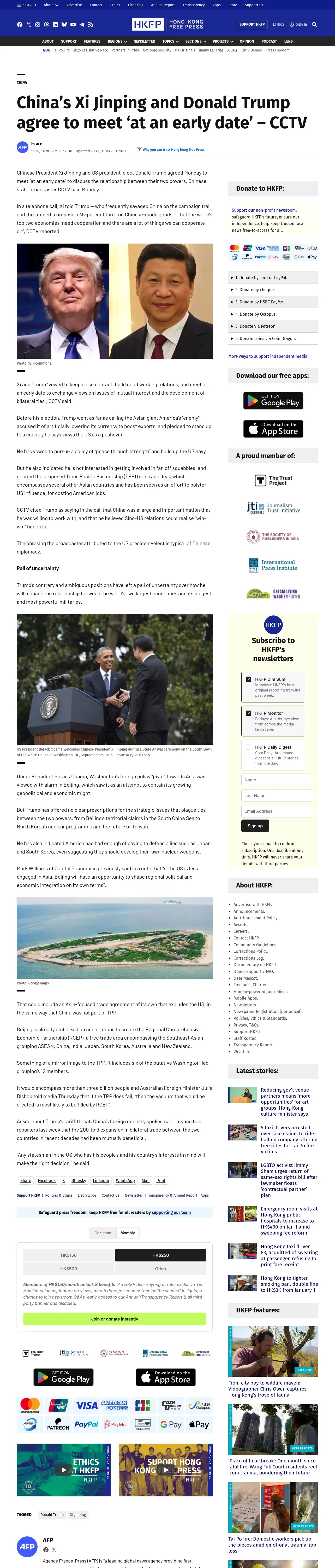 https://hongkongfp.com:443/2016/11/14/chinas-xi-jinping-and-donald-trump-agree-to-meet-at-an-early-date-cctv/