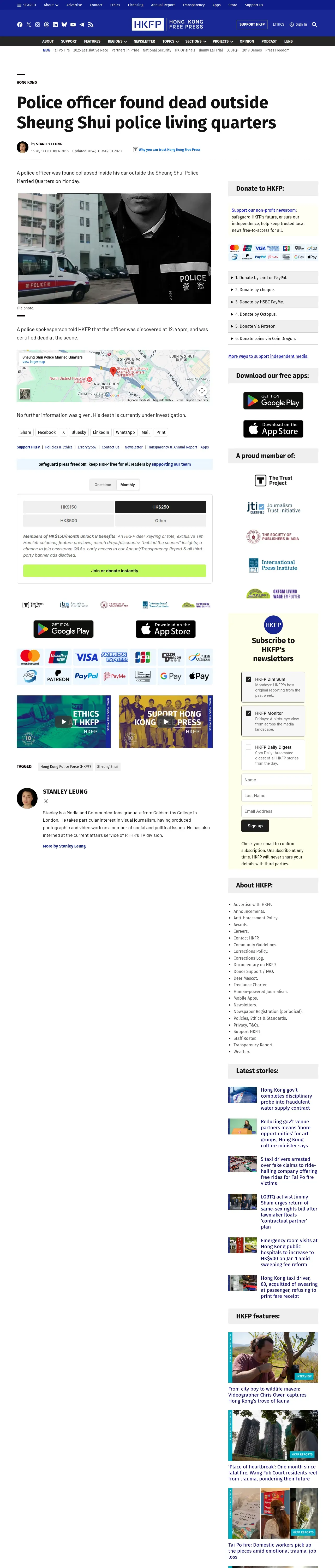 https://hongkongfp.com:443/2016/10/17/police-officer-found-dead-outside-sheung-shui-police-living-quarters/