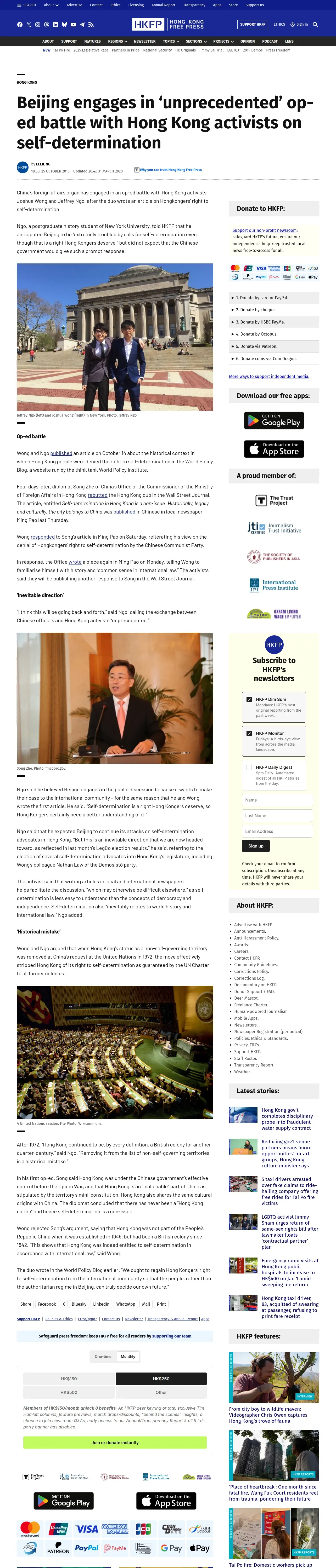 取得元URL: https://hongkongfp.com:443/2016/10/25/beijing-engages-unprecedented-op-ed-battle-hong-kong-activists-self-determination/