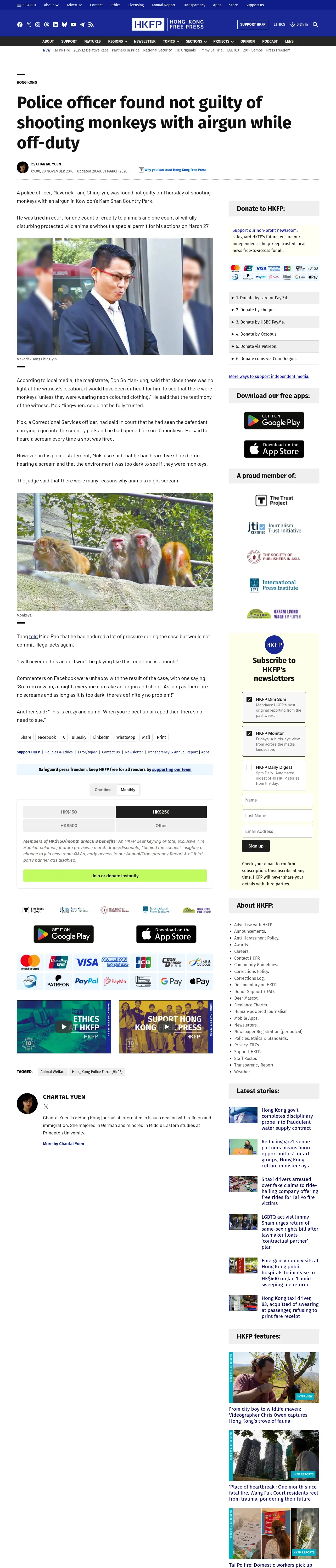 取得元URL: https://hongkongfp.com:443/2016/11/20/police-officer-found-not-guilty-shooting-monkeys-airgun-off-duty/