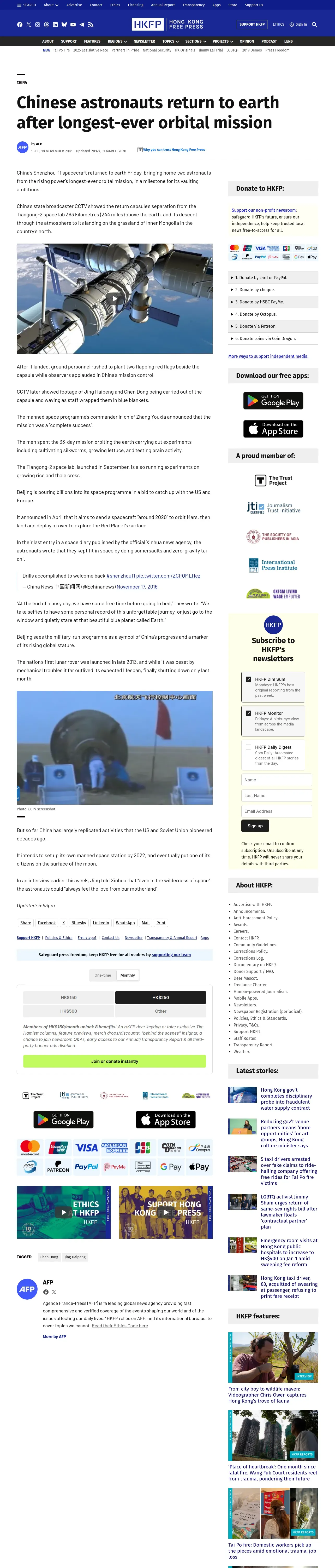 https://hongkongfp.com:443/2016/11/18/chinese-astronauts-return-earth-longest-ever-orbital-mission/