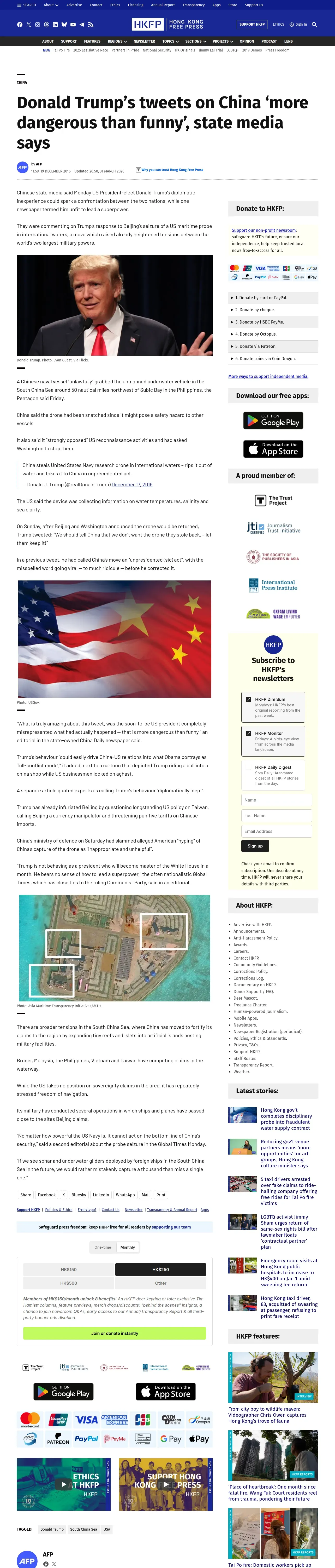 https://hongkongfp.com:443/2016/12/19/donald-trumps-tweets-on-china-more-dangerous-than-funny-says-stated-backed-paper/
