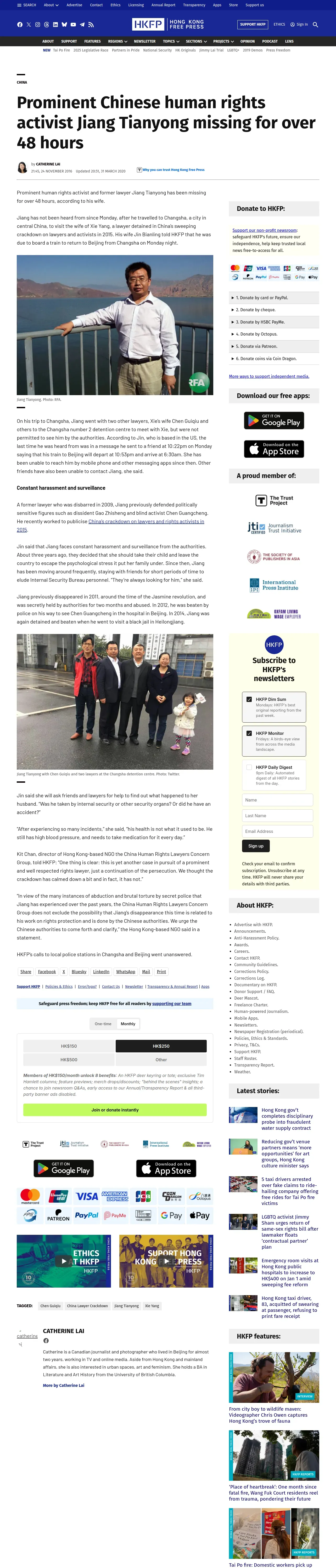 https://hongkongfp.com:443/2016/11/24/prominent-chinese-human-rights-activist-jiang-tianyong-missing-for-over-48-hours/