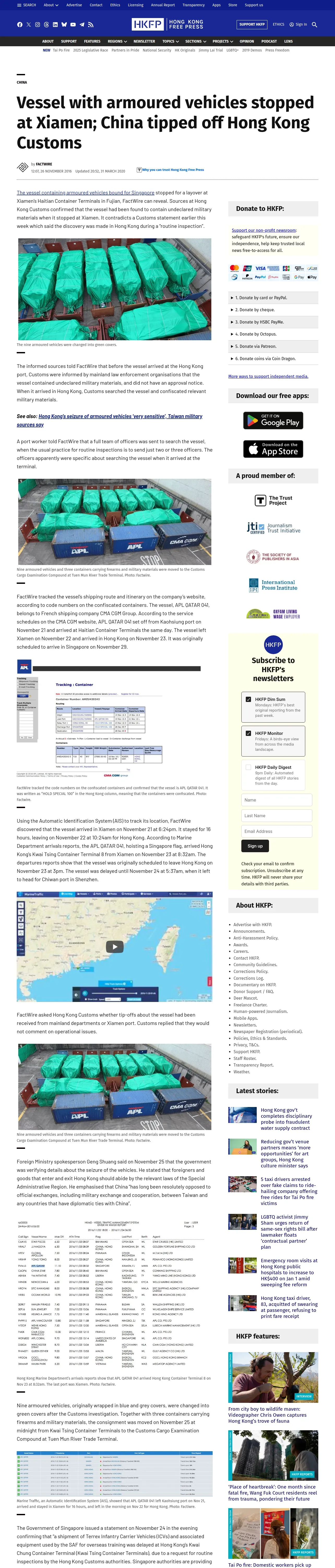 https://hongkongfp.com:443/2016/11/26/vessel-armoured-vehicles-stopped-xiamen-china-tipped-off-hong-kong-customs/