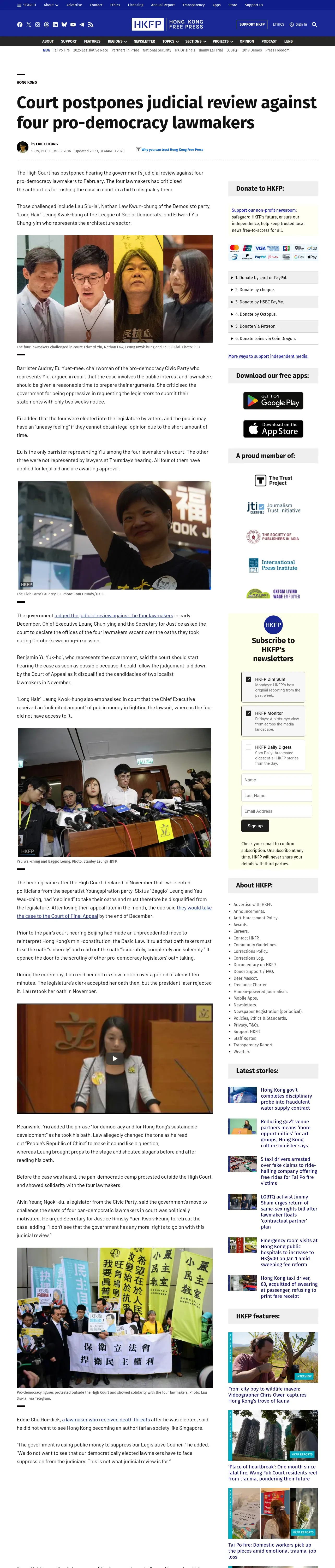 取得元URL: https://hongkongfp.com:443/2016/12/15/court-postpones-judicial-review-four-pro-democracy-lawmakers/