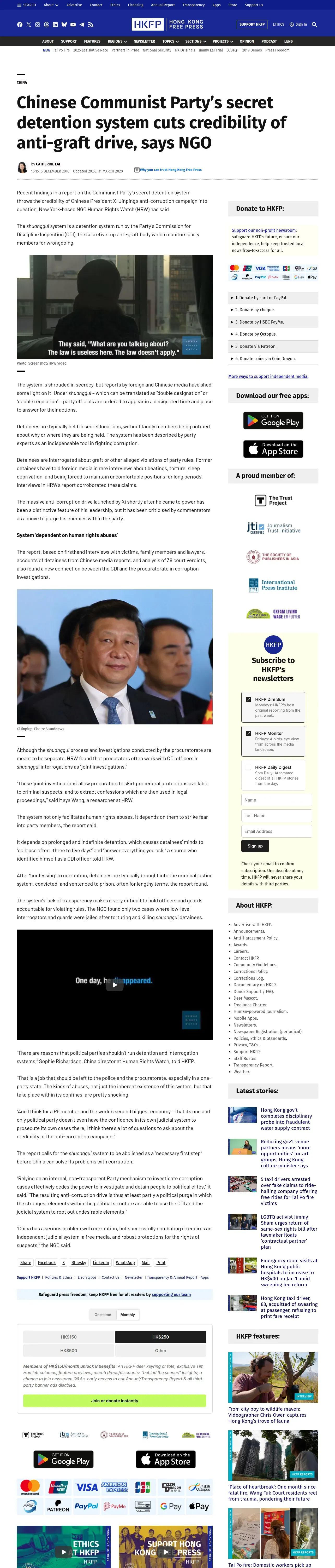 取得元URL: https://hongkongfp.com:443/2016/12/06/chinese-communist-partys-secret-detention-system-cuts-credibility-anti-graft-drive-says-ngo/