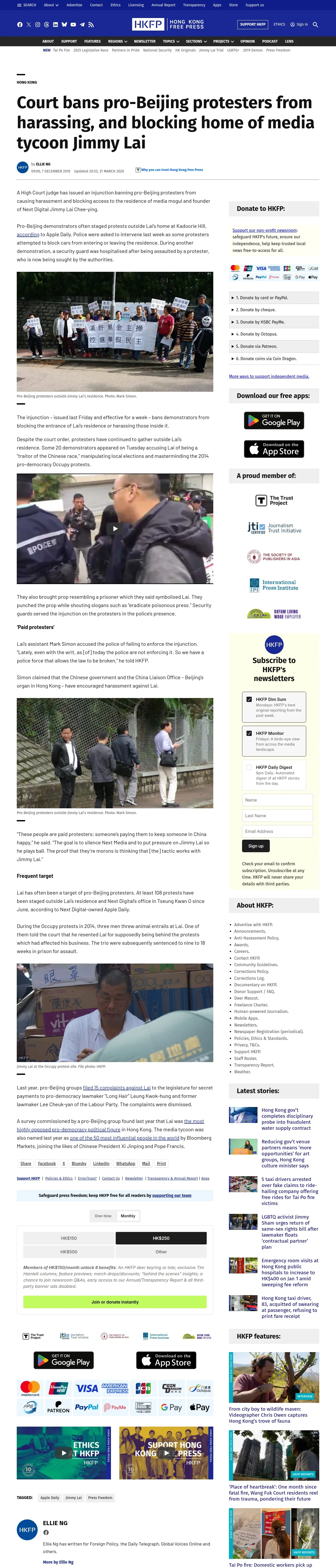 取得元URL: https://hongkongfp.com:443/2016/12/07/court-bans-pro-beijing-protesters-from-causing-harassment-blocking-home-of-media-tycoon-jimmy-lai/