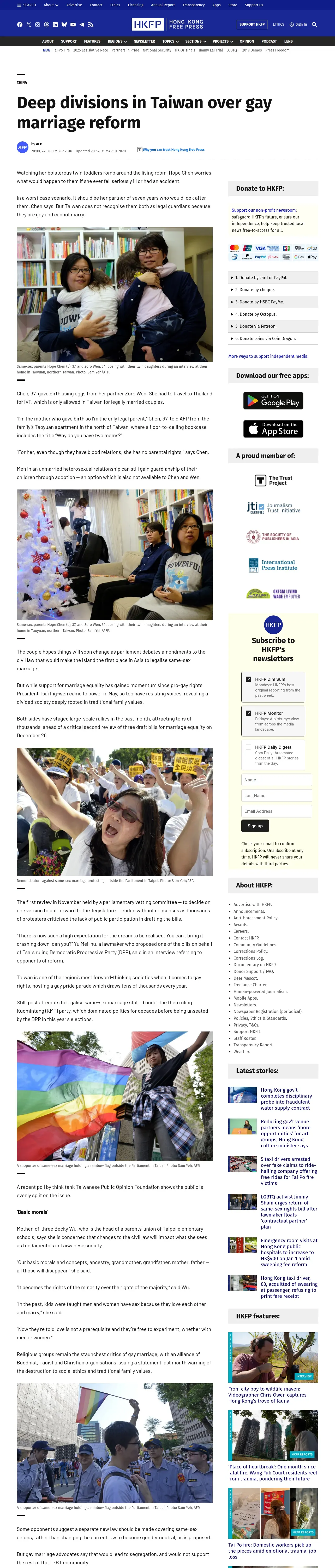 取得元URL: https://hongkongfp.com:443/2016/12/24/deep-divisions-taiwan-gay-marriage-reform/
