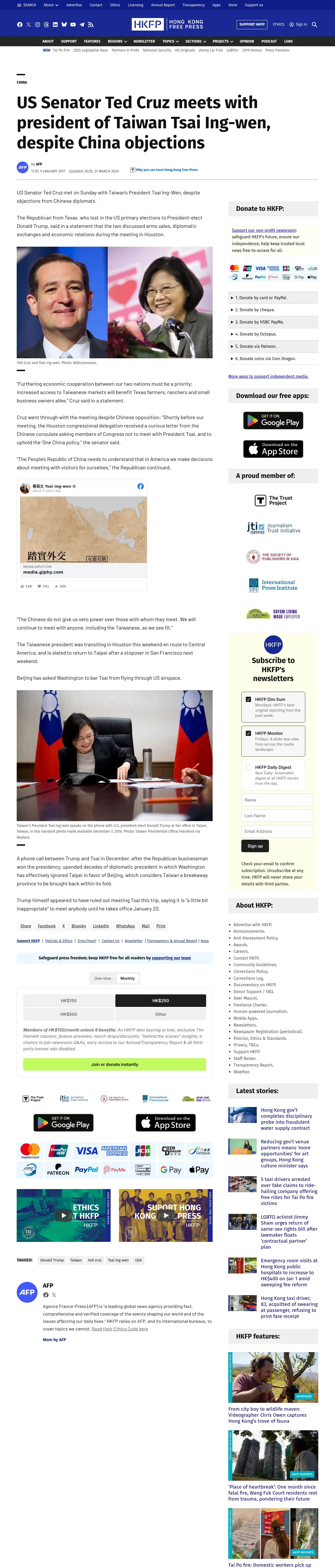 https://hongkongfp.com:443/2017/01/09/us-senator-ted-cruz-meets-president-taiwan-tsai-ing-wen-despite-china-objections/