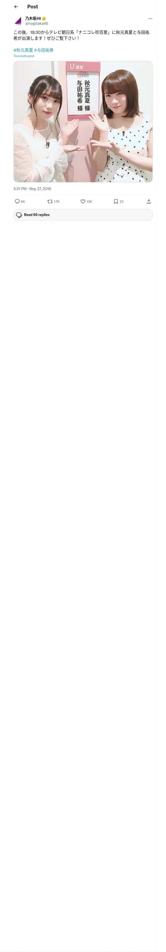 https://x.com:443/nogizaka46/status/1000655600357752832