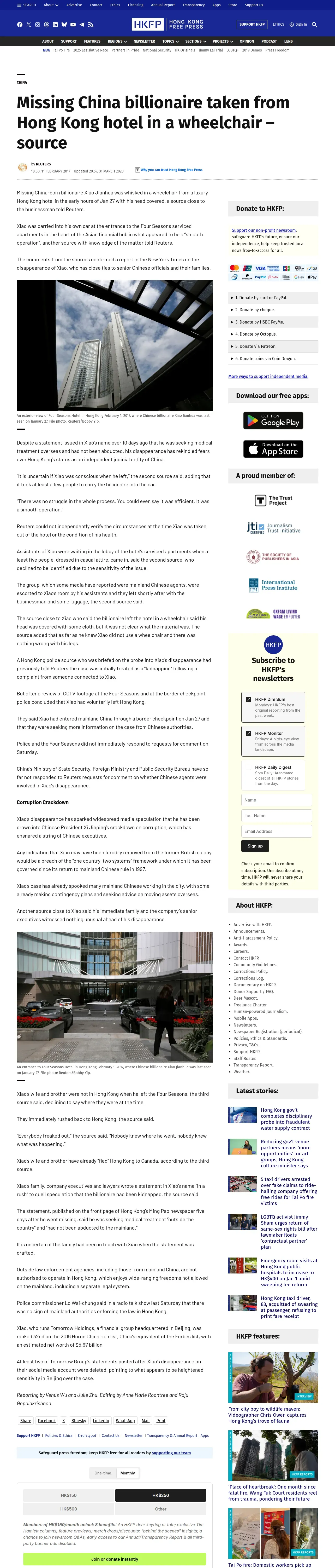 https://hongkongfp.com:443/2017/02/11/missing-china-billionaire-taken-hong-kong-hotel-wheelchair-source/
