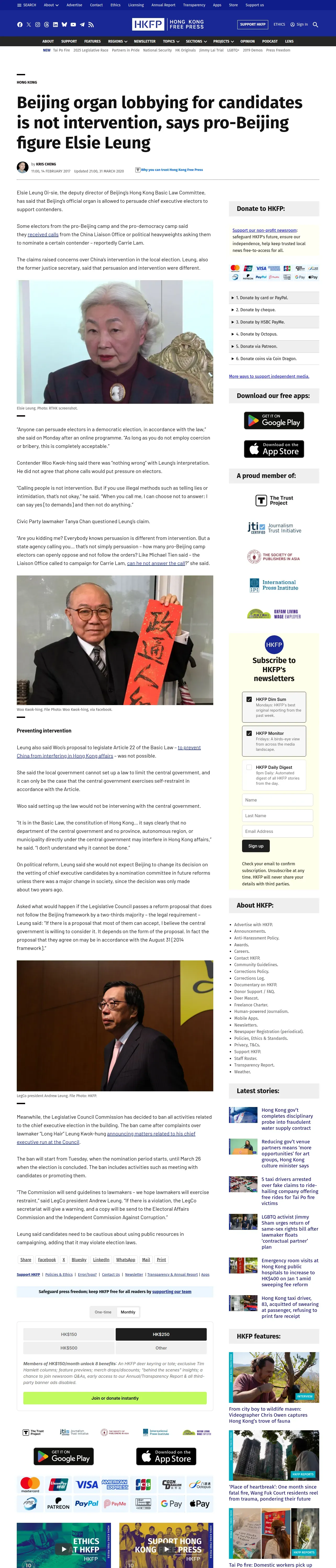 https://hongkongfp.com:443/2017/02/14/beijing-organ-lobbying-candidates-not-intervention-says-pro-beijing-figure-elsie-leung/