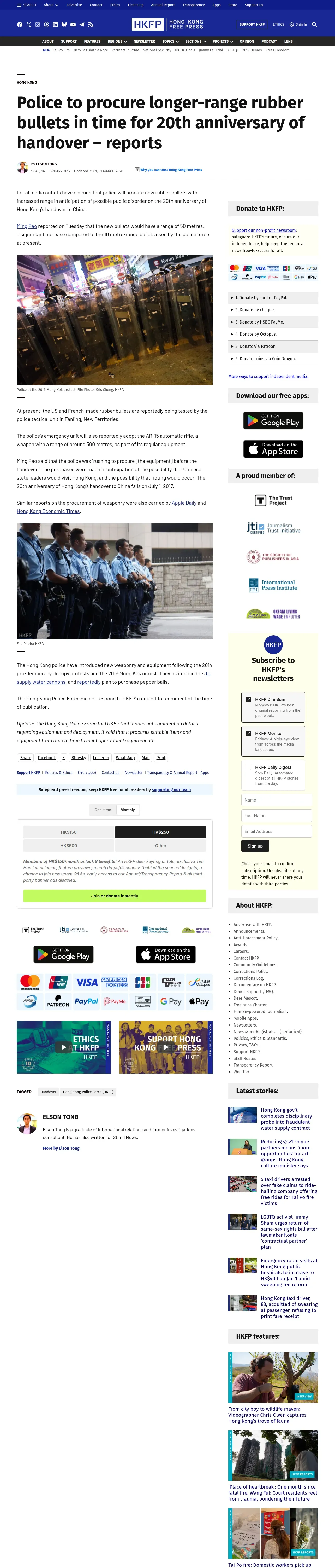 https://hongkongfp.com:443/2017/02/14/police-procure-longer-range-rubber-bullets-time-20th-anniversary-handover-reports/