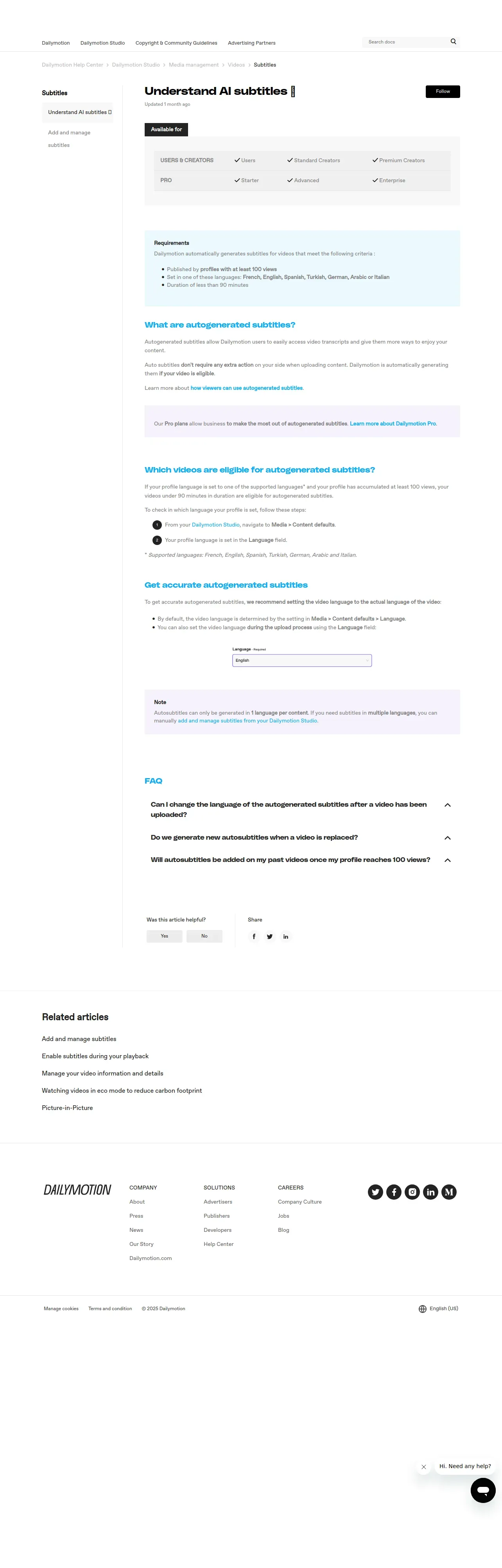 取得元URL: https://faq.dailymotion.com:443/hc/articles/20600751294354-Understanding-autogenerated-subtitles