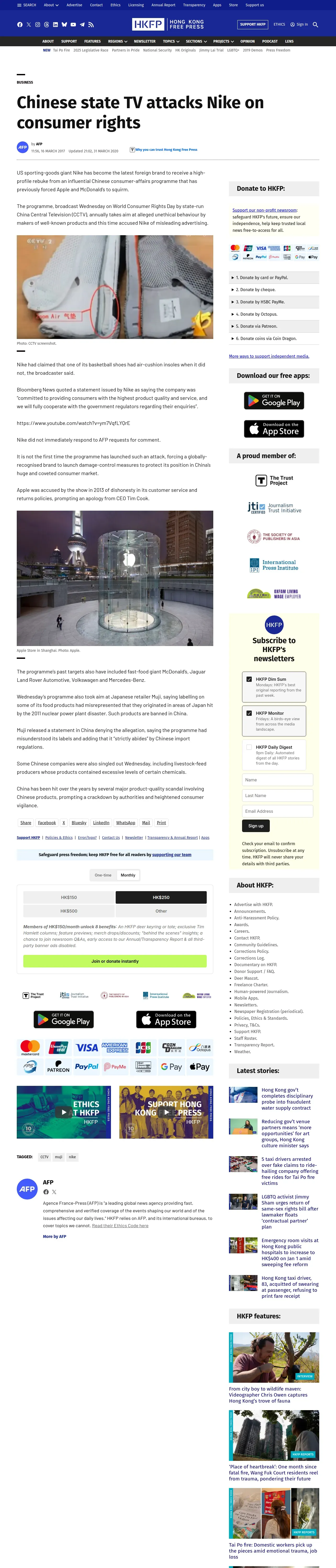 https://hongkongfp.com:443/2017/03/16/chinese-state-tv-attacks-nike-consumer-rights/