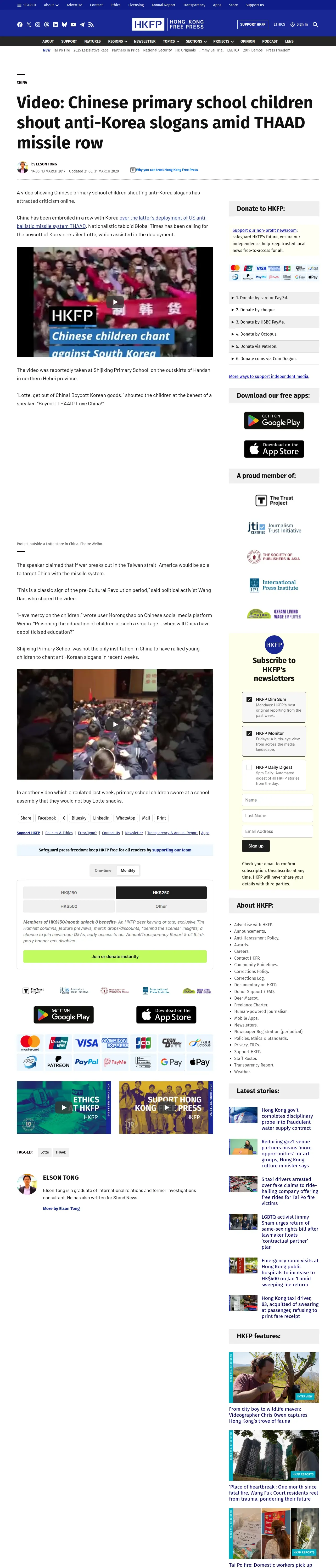 https://hongkongfp.com:443/2017/03/13/video-chinese-primary-school-children-shout-anti-korea-slogans-thaad-missile-row/