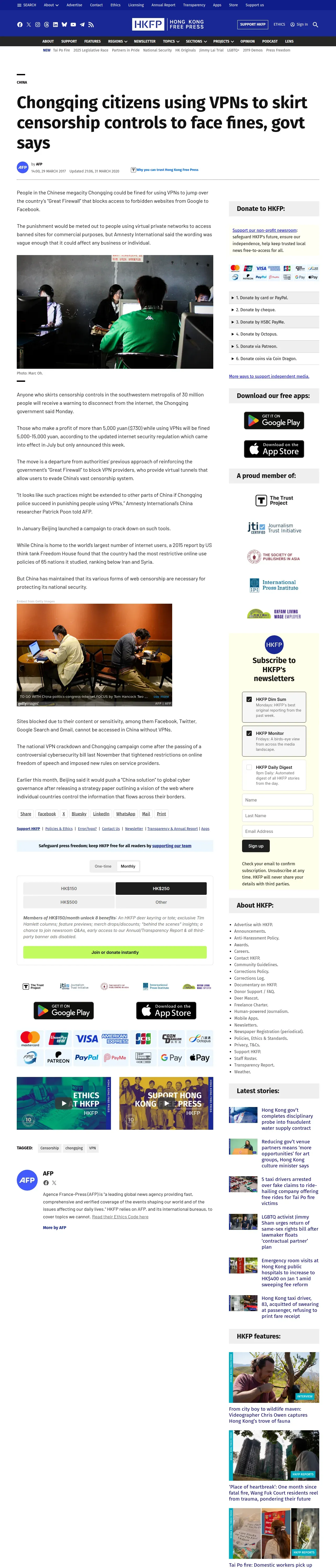 取得元URL: https://hongkongfp.com:443/2017/03/29/chongqing-citizens-using-vpns-skirt-censorship-controls-face-fines-govt-says/