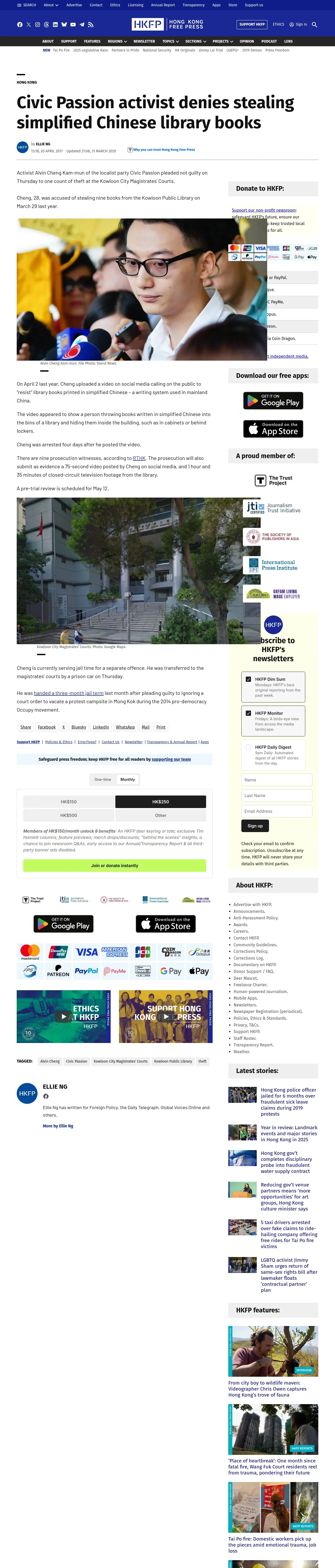 取得元URL: https://hongkongfp.com:443/2017/04/20/civic-passion-activist-denies-stealing-simplified-chinese-library-books/